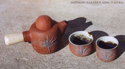 |  c36-1   Čajová souprava "Konopí" c36-1 čajová konvice a 2 misky Cena: 1.600,- Kč c36-2 dodatečná miska Cena: 150,- Kč | |