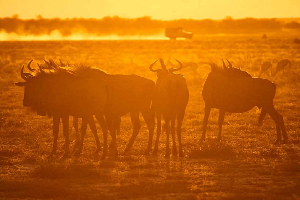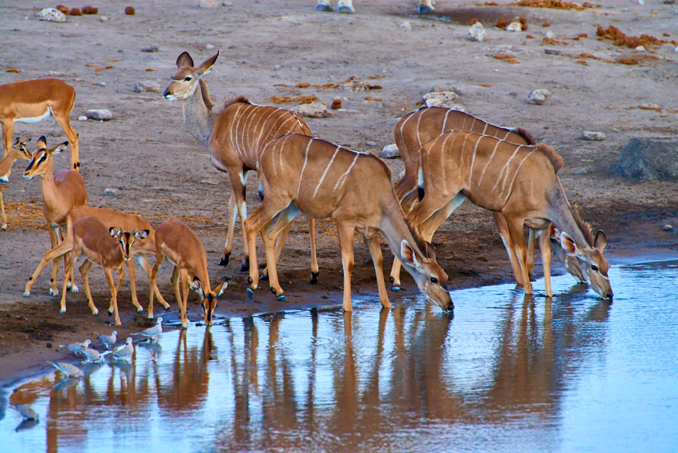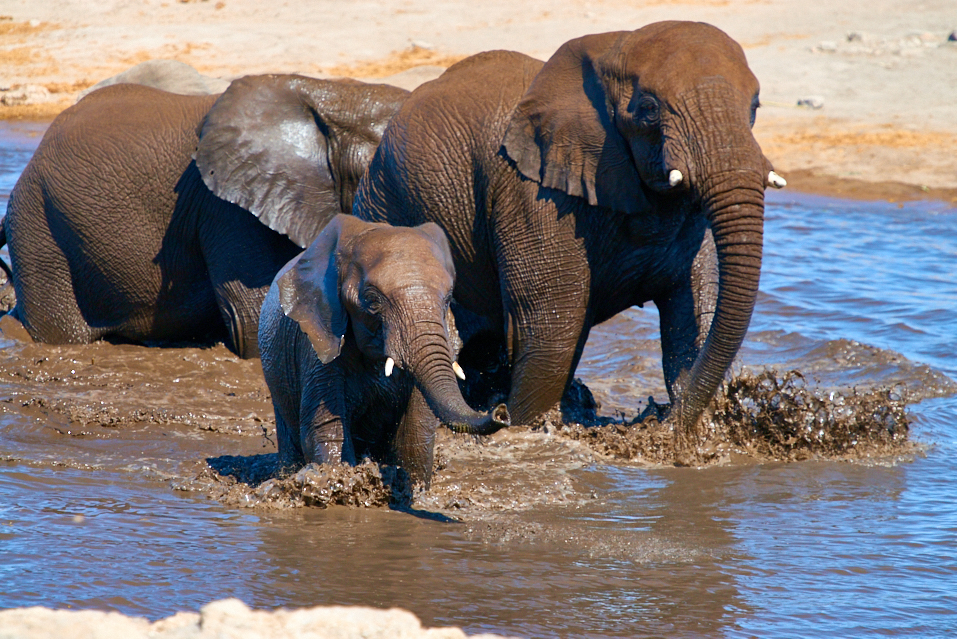 Obrovské safari nás pak čeká hlavně v národním parku ETOSHA, kde pobudeme několik dní. Zažijeme tady VELKOU SLONÍ KOUPEL, uvidíme plaché nosorožce, oryxe, antilopy, zebry i spousty dlouhokrkých žiraf. Jinak vyprahlá prašná krajina se u vodních napajedel promění ve skutečný zvířecí ráj. Vrcholem každého pořádného safari jsou samosebou VELKÉ ŠELMY, jen je v seschlé trávě objevit.