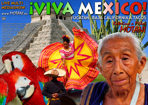 ![]() ![]() !VIVA MEXICO! TAJUPLNÝ YUCATAN Název Yucatan zní velmi tajuplně - a tajuplný tento poloostrov v Mexickém zálivu skutečně je. Yucatan je proděravělý spletitými vodními cenotami, jeho moře překypuje podmořskými poklady. Úchvatné mayské pyramidy obklopuje hustý a neprostupný prales. Nádherná příroda se tu mísí se starou indiánskou i současnou mexickou kulturou. Barvami hýřící zemi podmalovává pulsující mexická hudba. Na naší cestě se vypravíme do Mexika - na poloostrov Yucatan. Už při odletu máme VELKÉ PROBLÉMY. Ani noc na londýnském letišti neproběhne hladce. Ani na mexické půdě to není o nic lepší - až příliš často se o nás zajímá POLICIE. Na druhý den se oba potýkáme s mořskou nemocí. Sotva naše cesta začala, už jsme totálně vyřízení! Situace se nakonec přece jen uklidní a my pokračujeme v naší cestě. Necháme se zlákat KARIBIKEM - tyrkysovou vodou teplou jak kafe. Pronikneme do úžasného PODMOŘSKÉHO SVĚTA. Budeme plavat mezi hejny barevných rybiček. Lekneme se nebezpečného jedovatého rejnoka. Rozhodně si nenecháme ujít ani plavání s DELFÍNY. Políbíme MOŘSKOU PANNU. Podnikneme vzrušující plavbu za VELRYBÍMI ŽRALOKY. Pocítíme, jaké to je, když těsně kolem nás v moři proplouvají největší ryby na světě dorůstající délky až čtrnácti metrů! Yucatan je místem, kde se v letním období shromažďují až stovky těchto nádherných kolosů. Několik dní budeme trávit v CENOTÁCH, jeskynních jezírkách a podzemních řekách, kterými je Yucatan přímo protkaný. Do některých z těchto cenot házeli Mayové dokonce i své LIDSKÉ OBĚTI. Kdo se v tajuplném podzemním labyrintu ztratí, nenajde už cestu zpátky! Je období dešťů, nesnesitelné dusno, a tak promokneme každý den na kost. Uvidíme pravou TROPICKOU DŽUNGLI, zajímavé rostliny, vodopády a spousty nejrůznějších zvířat. Natrefíme na velké krokodýly. Polechtáme na břichu jedovatou TARANTULI. Narazíme také na velkou tlupu mlsných NOSÁLŮ. Navštívíme několik starých mayských měst, jako jsou věhlasné Tulum, Calacmul, CHITZÉN ITZA, Uxmal a Palenque. Spatříme úchvatné MAYSKÉ PYRAMIDY i pravou hvězdárnu. Pronikneme do mayské a olmécké kultury, jejich záhad a tajů. Uvidíme RITUÁLNÍ OBŘADY - tajemnou míčovou hru pelota, létající muže VOLADORES a ještě tajemnější ohňovou hru uarhukua. Strávíme několik dní mezi pravými indiány, podíváme se do hlavního indiánského města SAN CRISTOBAL. Prochodíme hned několik starých KOLONIÁLNÍCH MĚST, které hýří všemi barvami. Přes den a pak hlavně navečer zazní ve městě energická MEXICKÁ HUDBA. Uslyšíme hrát potulné muzikanty, mariarchy a marimbu, která roztančí snad každé srdce. Tolik muziky jako v Mexiku, jsme zatím neslyšeli! Ochutnáme věhlasnou mexickou kuchyni, kde nikdy nechybí kukuřice, papriky, rajčata, čili ani limetka. Ochutnáme také věhlasné KUŘE S ČOKOLÁDOU. Nejvíce si pochutnáme na TACOS, které se za pár pesos prodávají na každém rohu. Chutné jídlo zapijeme čím jiným než pravou mexickou TEQUILOU. VELMI ÚSPĚŠNÉ A PESTRÉ PÁSMO Obzvlášť úspěšná a hodně pestrá fotograficko-filmová projekce Kateřiny a Miloše MOTANI napříč tajuplným poloostrovem Yucatan. Cesta zemí, kde se úchvatná příroda mísí se starou i novou kulturou, a kde na každém rohu prodávají tacos.
